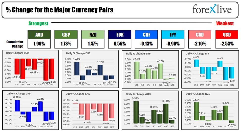 The AUD is the strongest and the USD is the weakest as the NA session