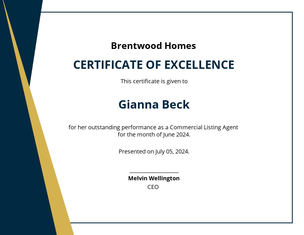 Professional and polished real estate certificate template