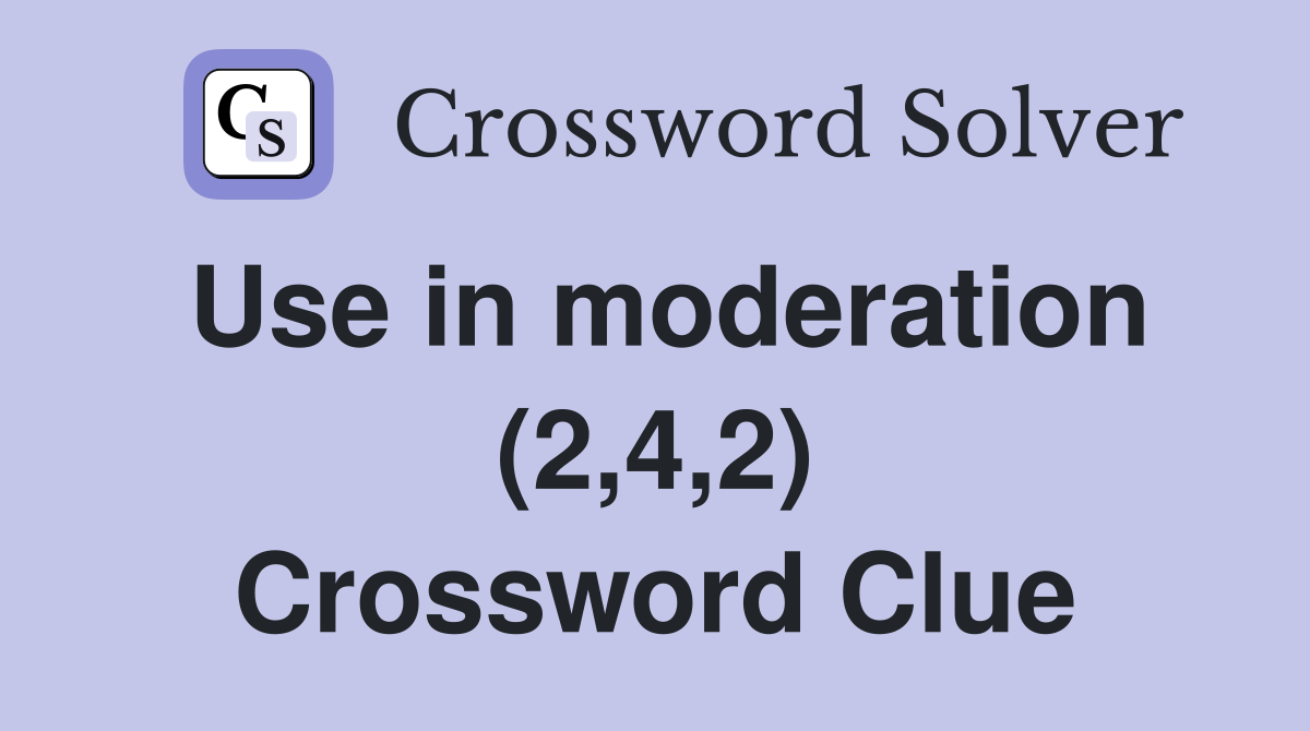 Use in moderation (2 4 2) Crossword Clue Answers Crossword Solver