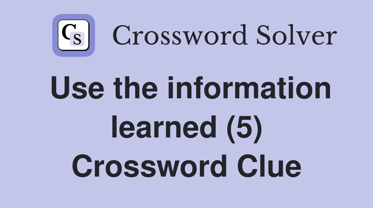 Use the information learned (5) Crossword Clue Answers Crossword Solver