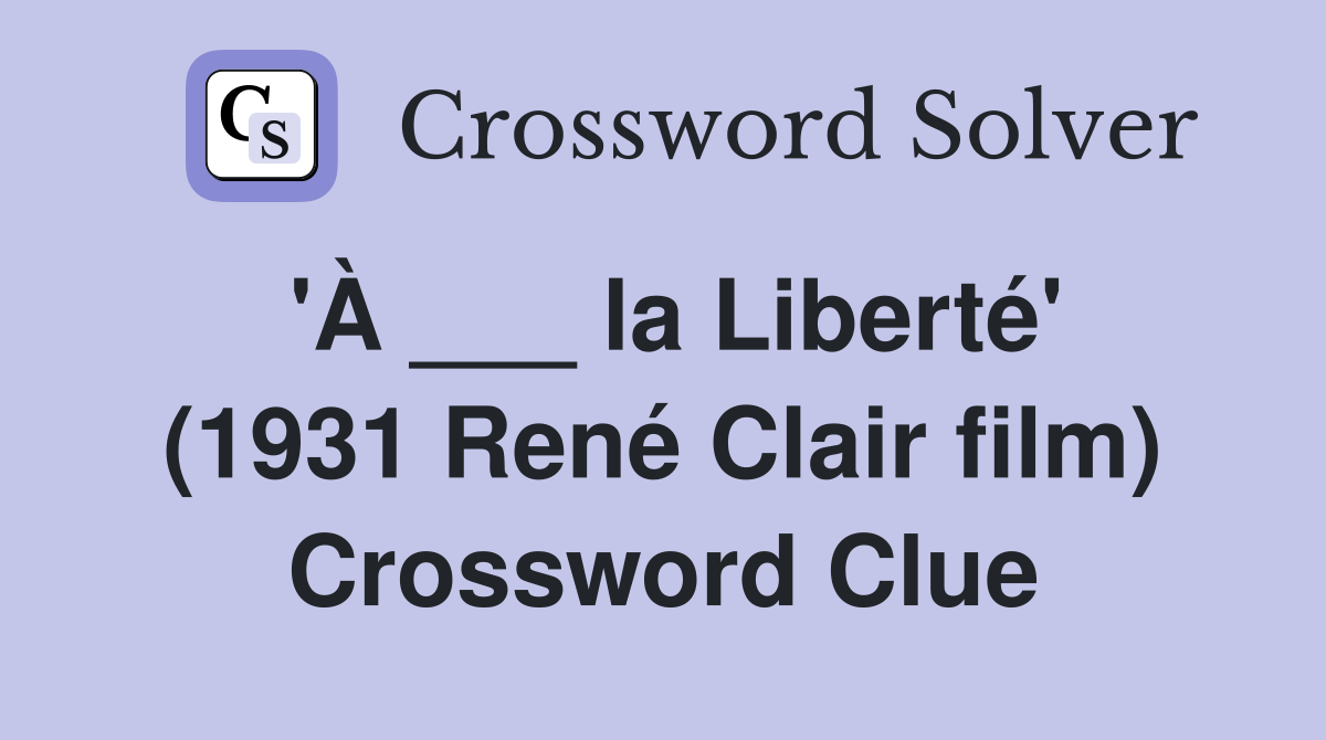 #39 À la Liberté #39 (1931 René Clair film) Crossword Clue Answers