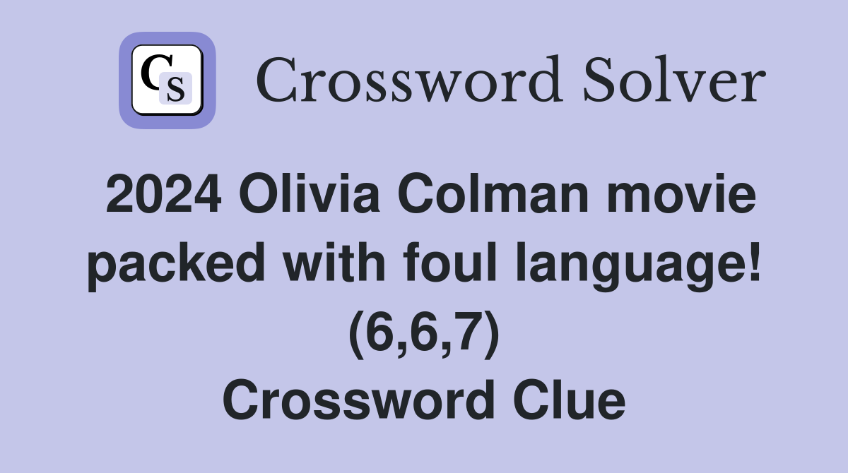 2024 Olivia Colman movie packed with foul language (6 6 7) Crossword