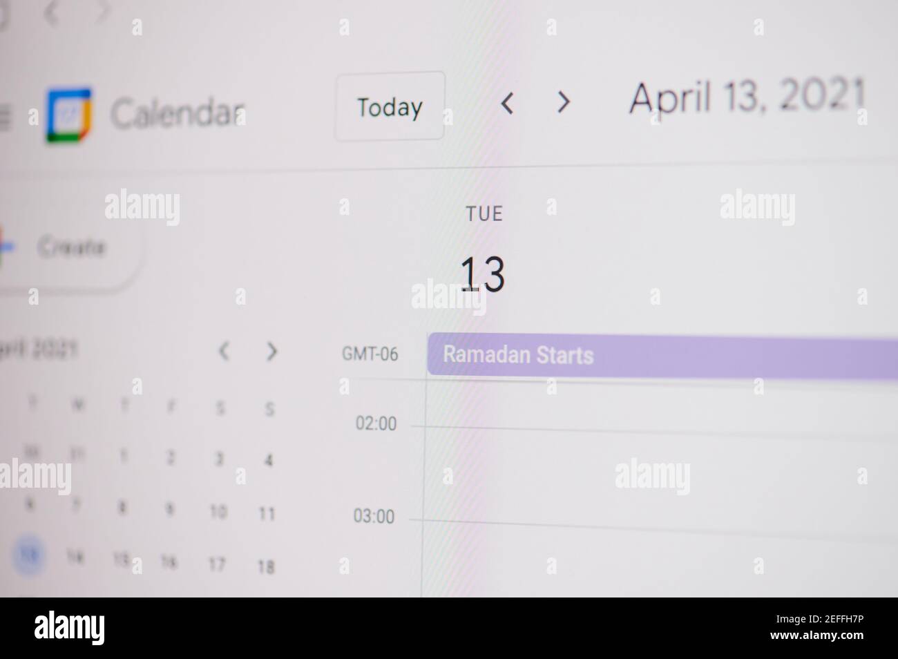 New york USA February 17 2021: Ramadan start 13 of April on google
