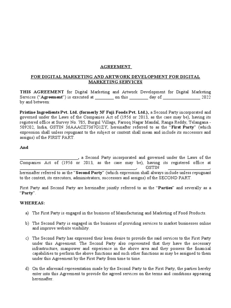 Agreement For Digital Marketing and Artwork Template PDF