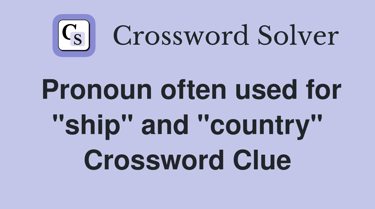 Pronoun often used for quot ship quot and quot country quot Crossword Clue Answers
