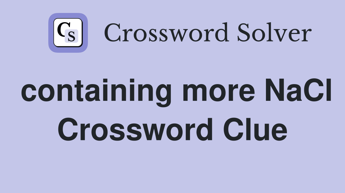 containing more NaCl Crossword Clue Answers Crossword Solver