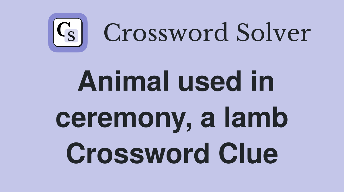 Animal used in ceremony a lamb Crossword Clue Answers Crossword Solver