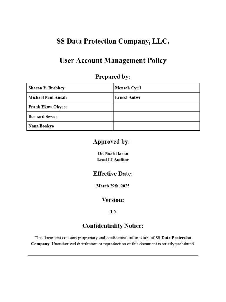 User Account Management Policy Example Technology and Software