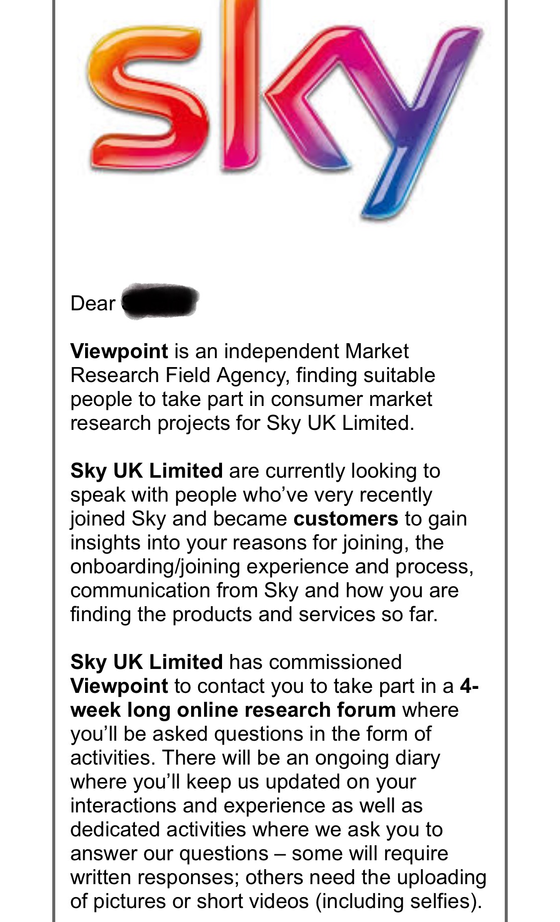 is this research email genuine on behalf of SKY? Sky Community