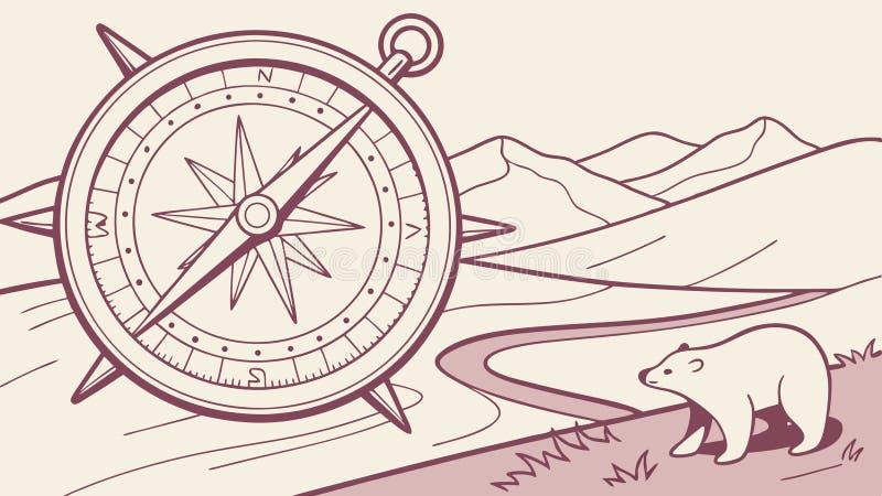 Compass Rose with Polar Bear and Mountains Vector Design Generative AI