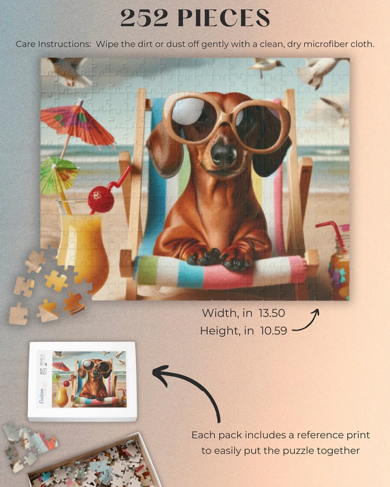 Sunny Beach Dachshund Puzzle Coco on Vacation Jigsaw Doxie Lovers