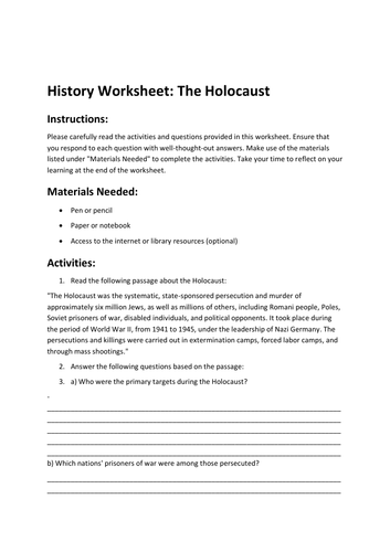 Introduction To The Holocaust Worksheet Answer Key prntbl