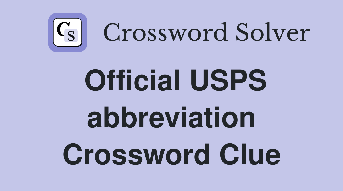 Official USPS abbreviation Crossword Clue Answers Crossword Solver