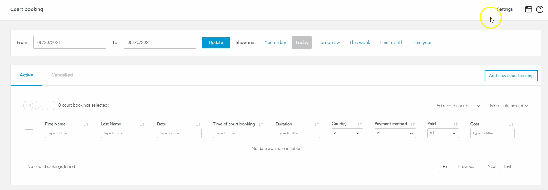 Court Booking Sheet View USTA Online Help Center