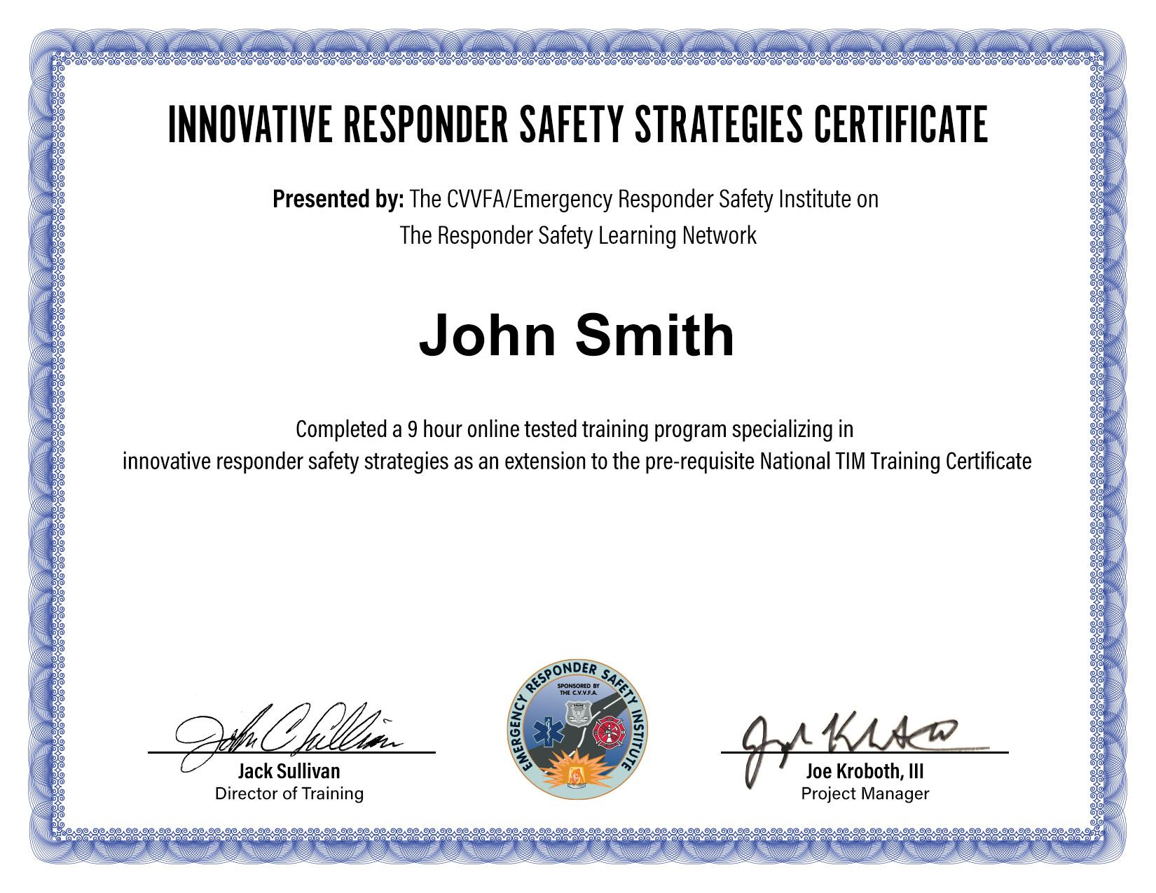 Innovative Responder Safety Strategies Certificate Emergency Responders