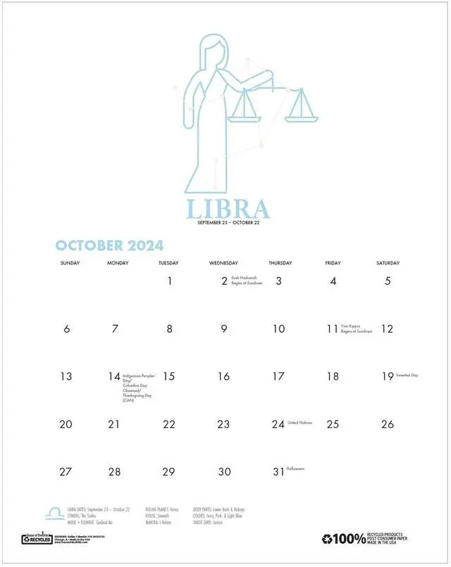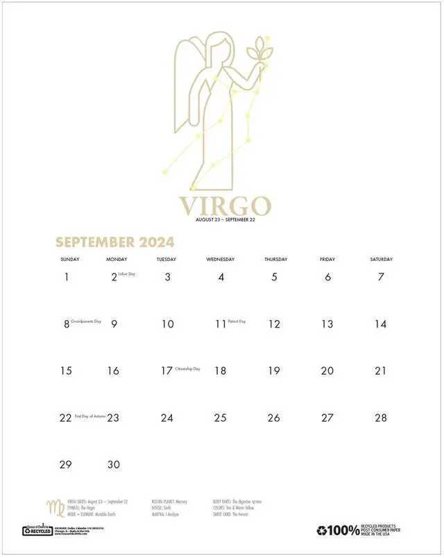 Recycled Academic Zodiac Wall Calendar 14 x 11 Multicolor Sheets12