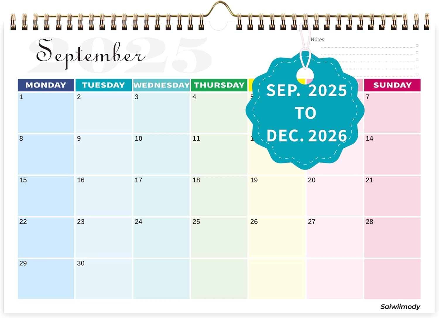 Wall Calendar 2025 2026 UK Sep 2025 to Dec 2026 Colorful Family
