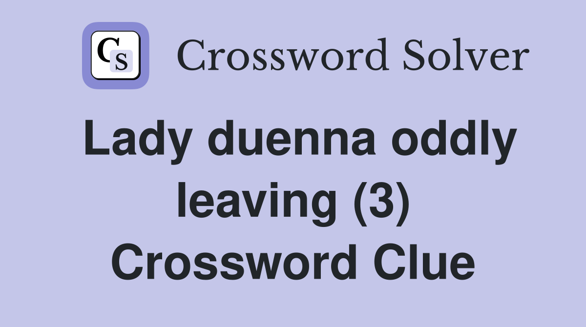 Lady duenna oddly leaving (3) Crossword Clue Answers Crossword Solver
