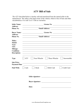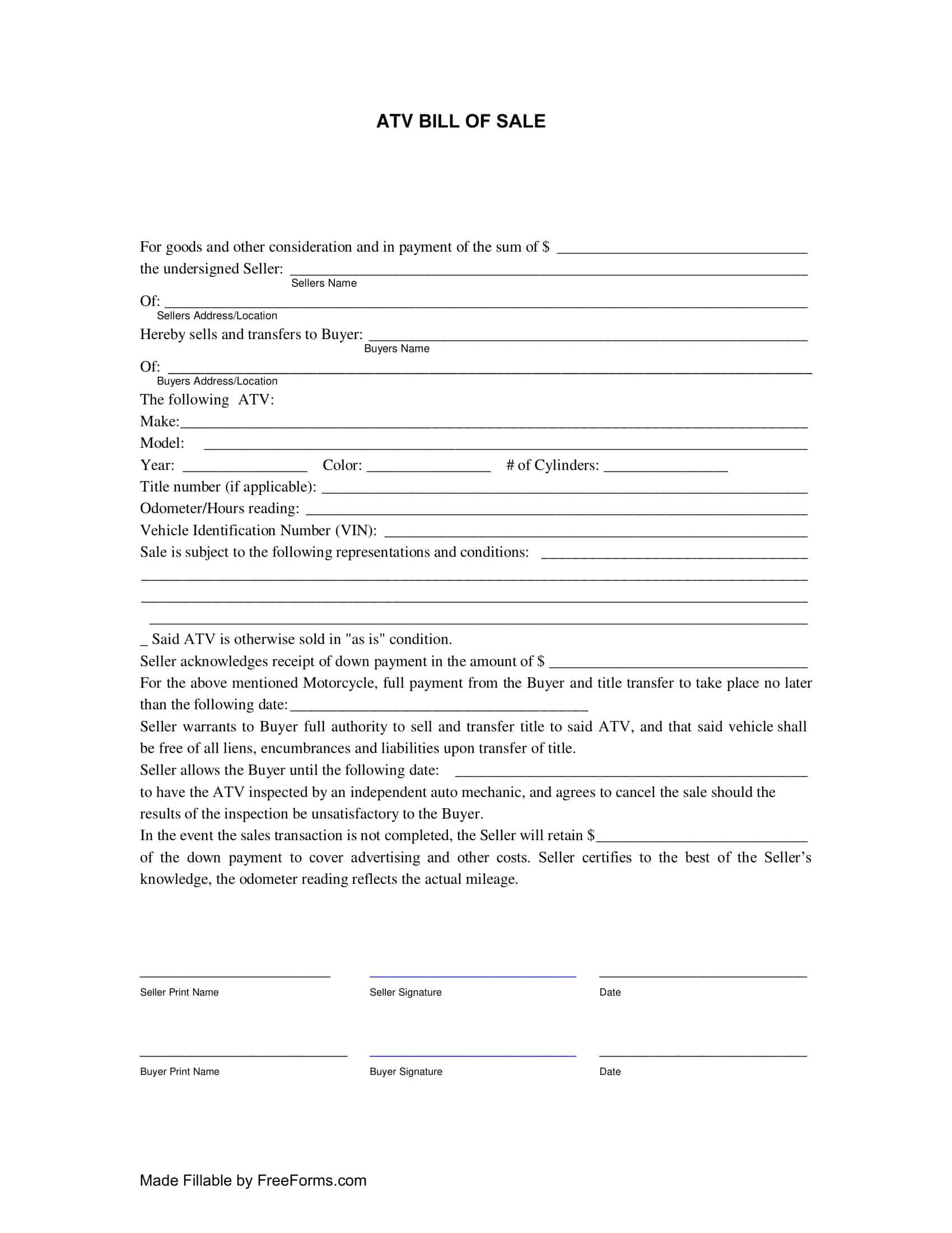 Free Printable Atv Bill Of Sale