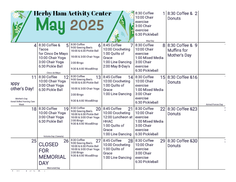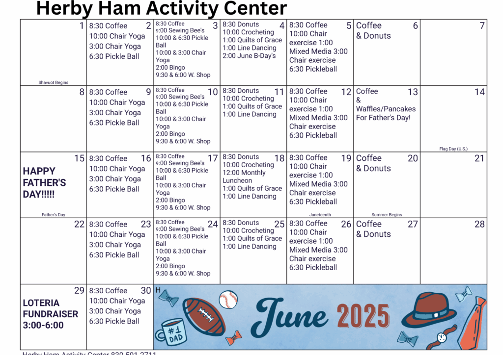 Herby Ham Activity Center Calendar and Newsletter Uvalde Hesperian