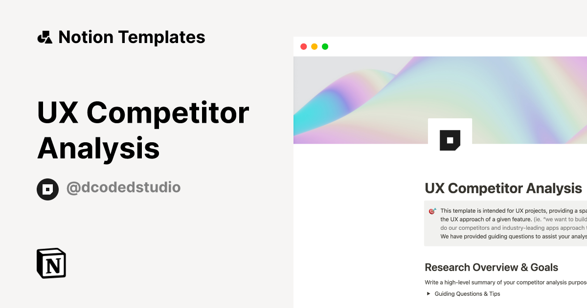 UX Competitor Analysis Template by DCODED STUDIO Notion Marketplace