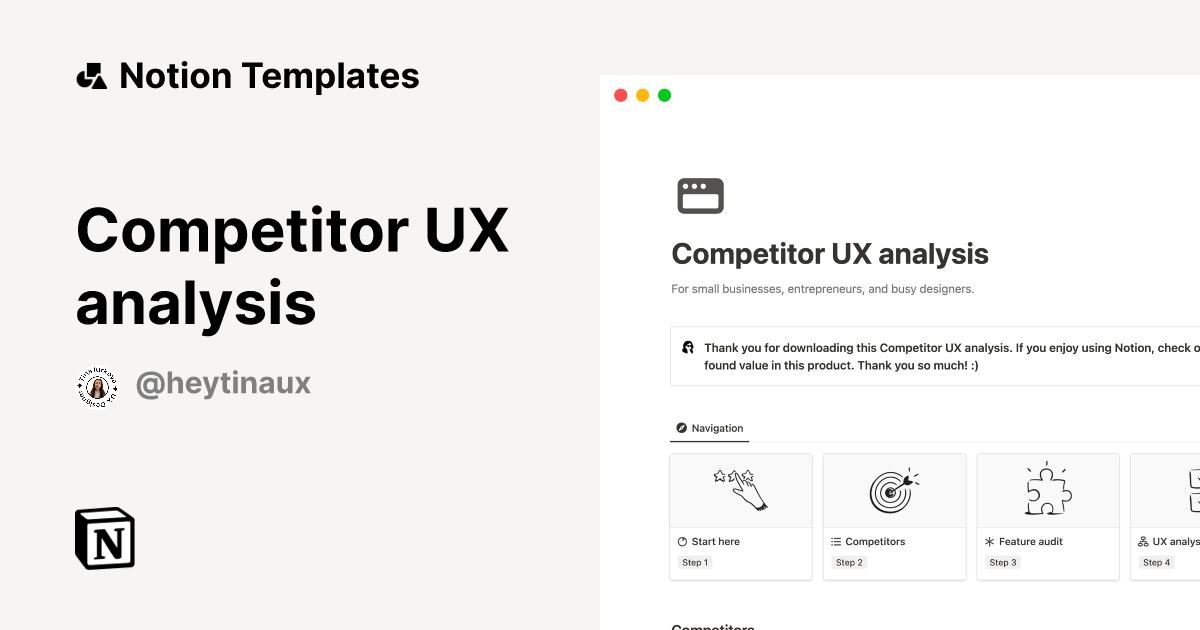 Competitor UX Analysis for Free by Tina Design Notion Template