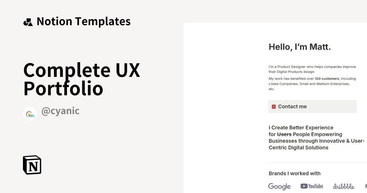 Complete UX Portfolio Template by Cyanic Notion Marketplace