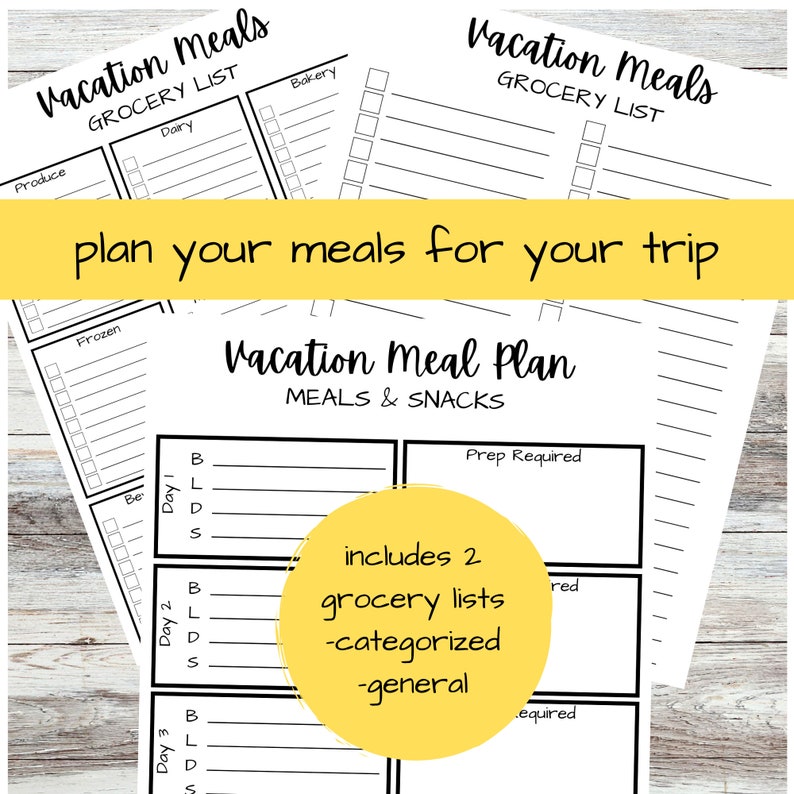 Customizable Vacation Meal Planner: Printable PDF for Trip Groceries