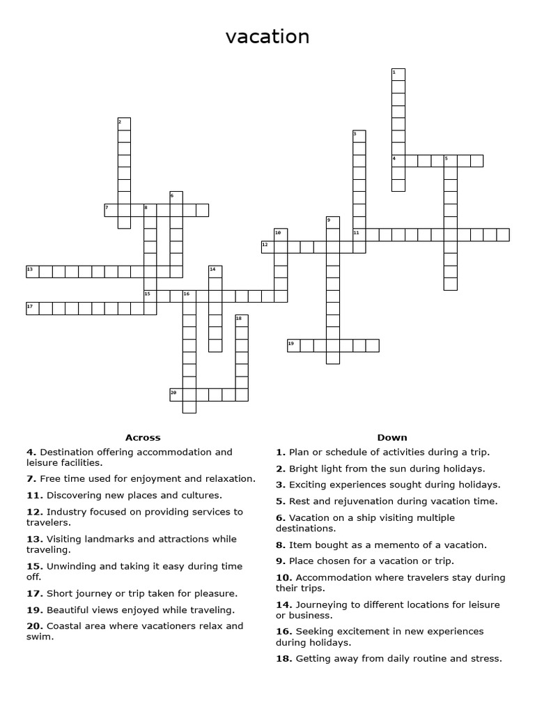 Vacation Crossword Puzzle PDF
