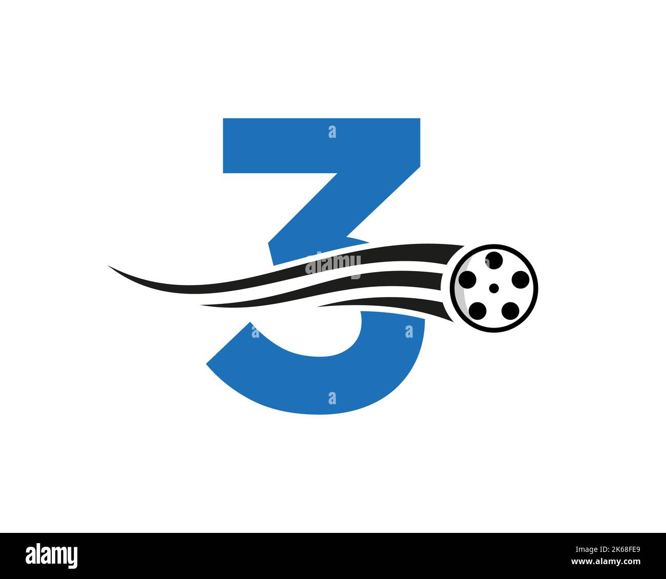 Initial Letter 3 Film Logo Concept With Film Reel For Media Sign Movie