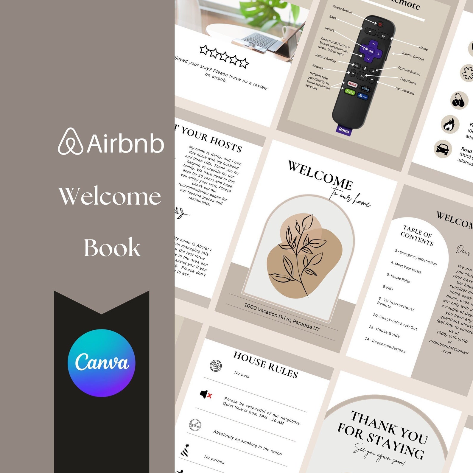 Airbnb welcome book template canva vacation rental book template airbnb