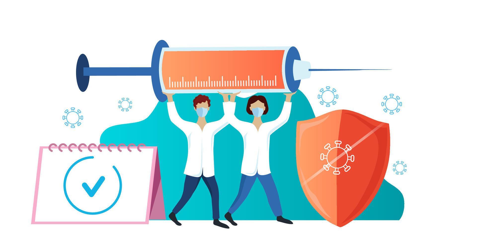 Doctors carry a syringe with the vaccine Vaccination calendar shield