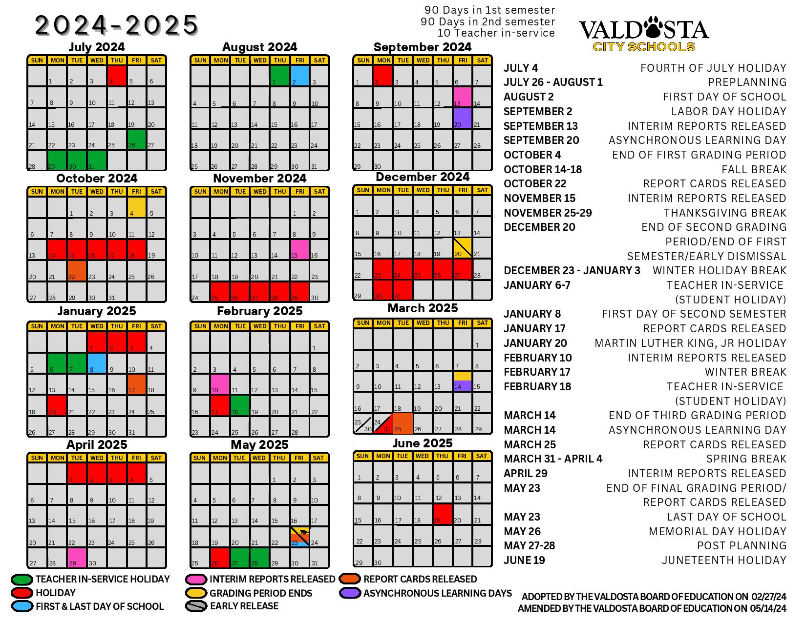 Valdosta Board of Education Adopts 2024 25 Official Academic Calendar
