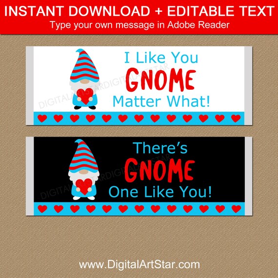 Gnome Valentine Candy Bar Wrapper Printable Chocolate Bar Wrappers