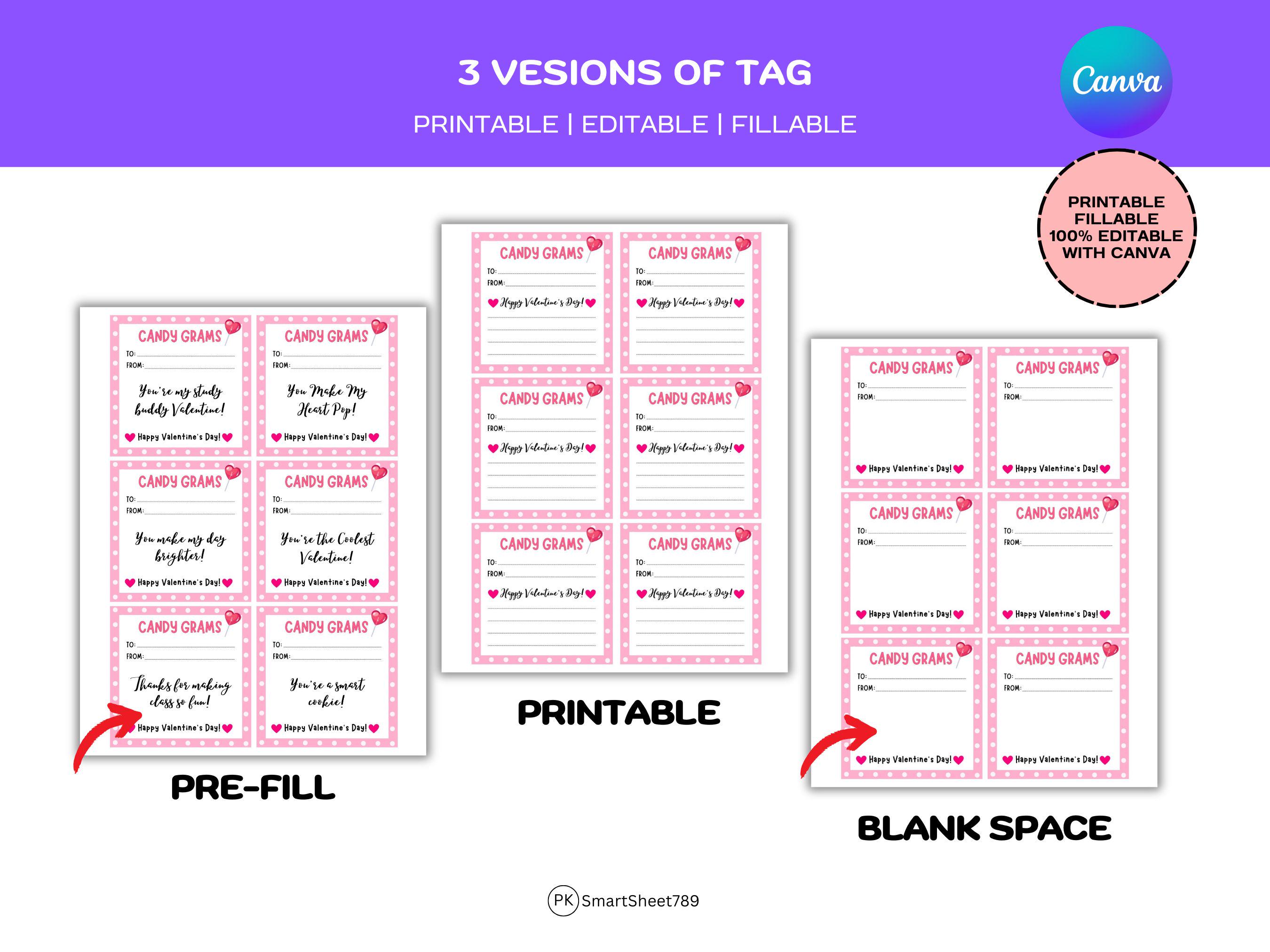 Editable Valentine Candy Gram Template: School Fundraiser (canva) Etsy