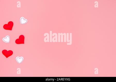 Pink background framed with red hearts for romantic motives in