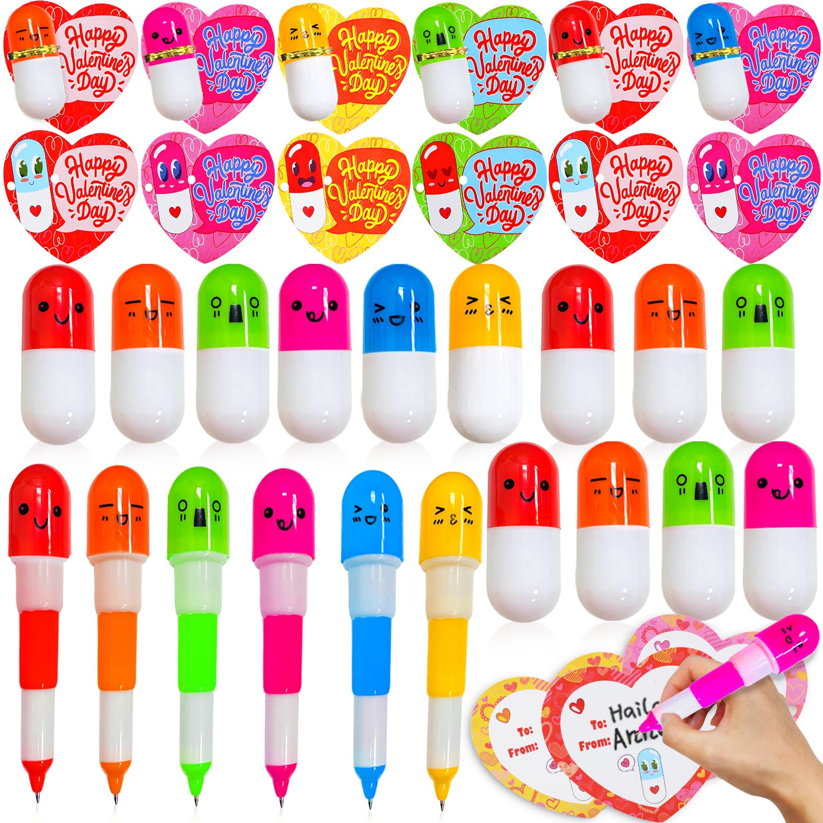 AMENON 28 Pack Valentines Day Cards with Retractable Pens Valentines