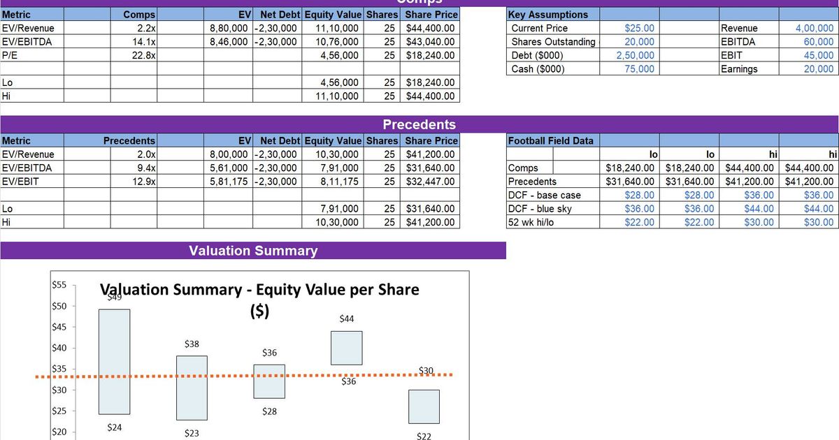 Valuation Model: Excel Template for Football Field Comps Precedents