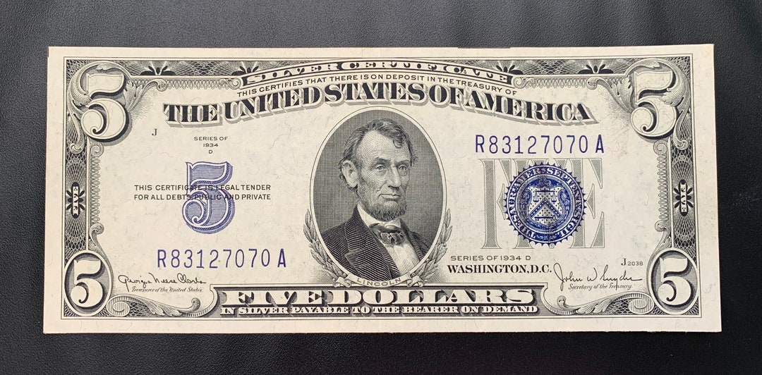 Series 1934 D Five Dollar Silver Certificate R 83127070 A Etsy