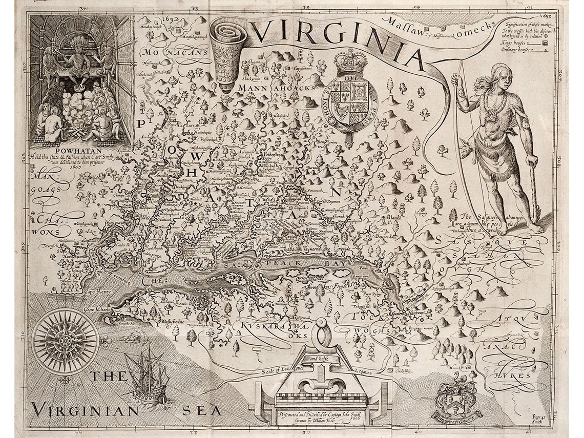 1627 Map of Virginia by John Smith Historic Vintage Style Wall Map