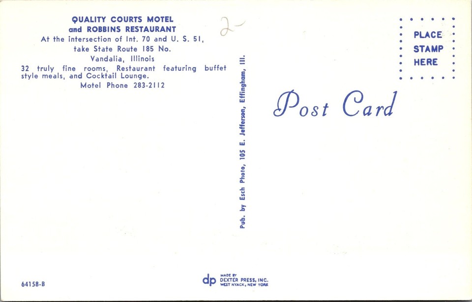 1961 Robbins Quality Courts Motel And Restaurant Vandalia Illinois IL