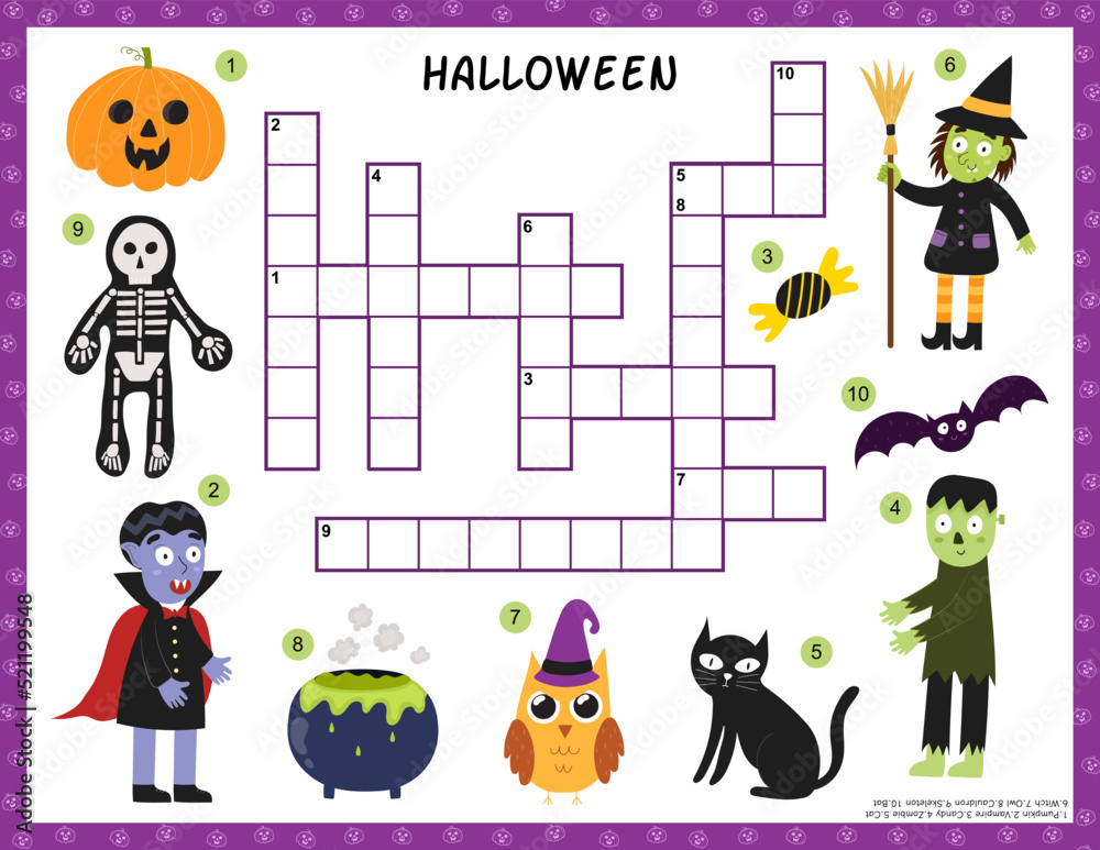 Black White Halloween Crossword Spooky Characters Stock Vector (Royalty