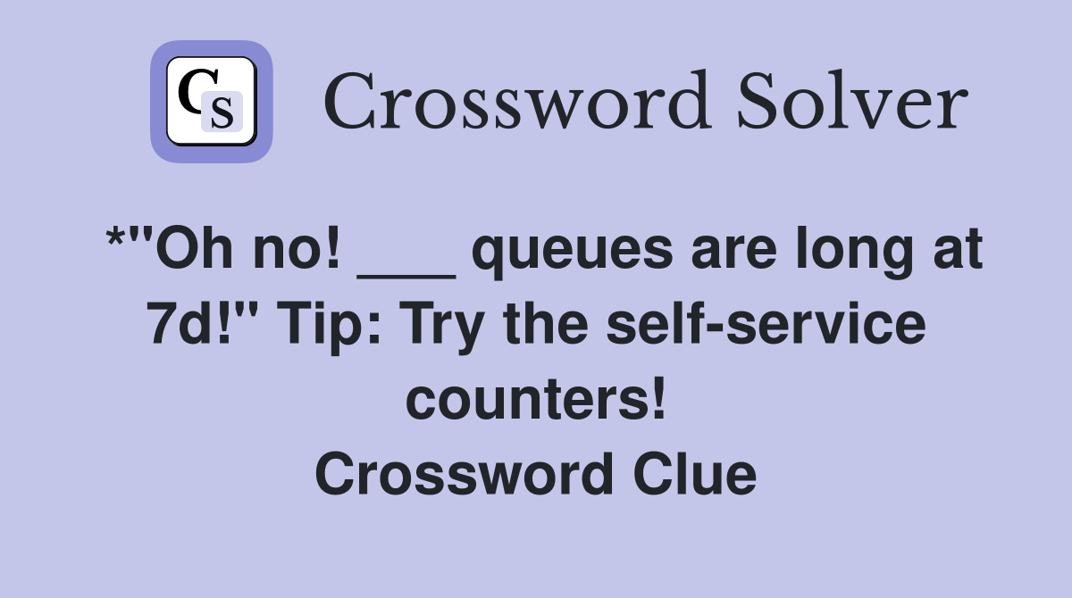 * quot Oh no queues are long at 7d quot Tip: Try the self service counters