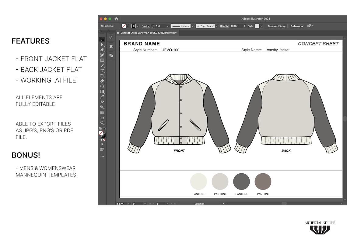 Streetwear Varsity Jacket Mockup Vector Adobe Illustrator Etsy