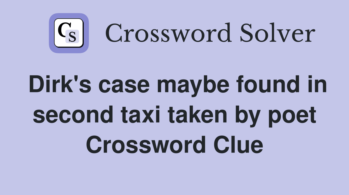 Dirk #39 s case maybe found in second taxi taken by poet Crossword Clue