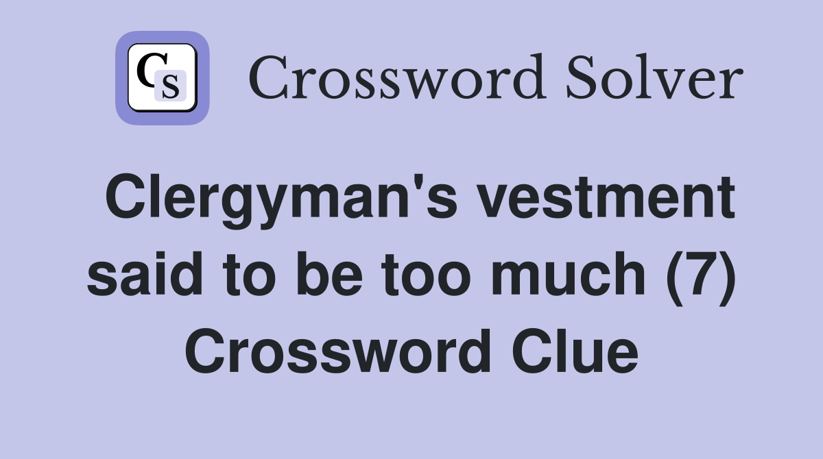 Clergyman s vestment said to be too much (7) Crossword Clue Answers