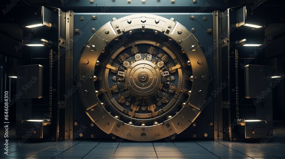 Open bank vault door revealing stacks of gold bars Stock Photo Adobe