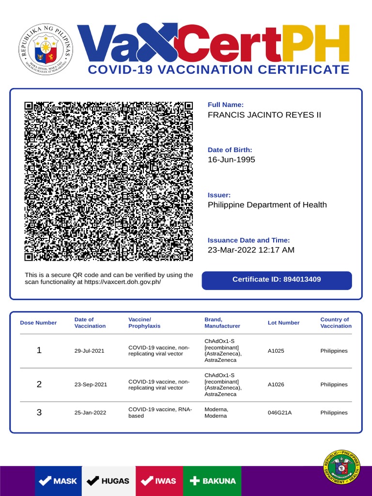 Vaccination Certificate PDF Virology Public Health