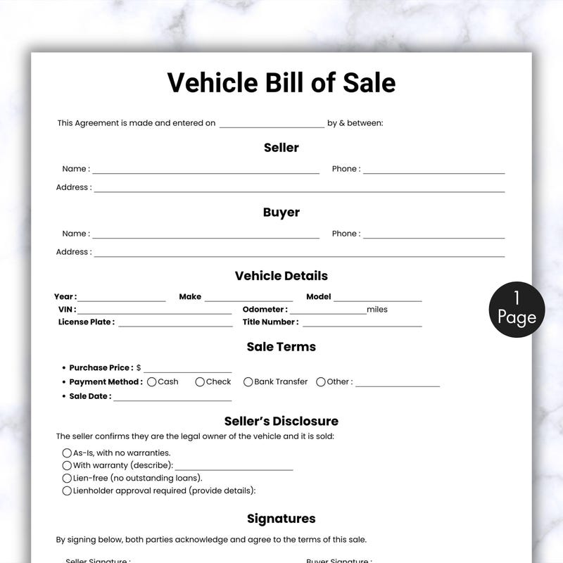 Car Bill of Sale As is Template Instant Digital Download and Print