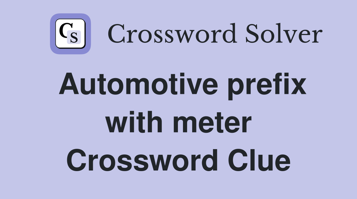 Automotive prefix with meter Crossword Clue Answers Crossword Solver